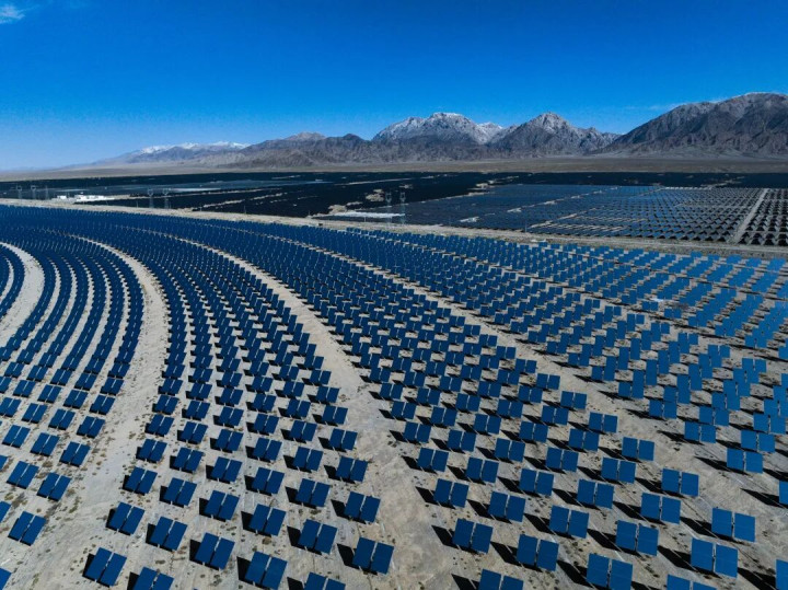 青海省海西蒙古族藏族自治州德令哈市光伏(光热)产业园的光热电站。新华社记者张龙摄